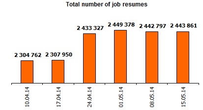 Selection of vacancies per applicant has increased by 5 points in the last week. Note: the calculation takes into account not only the total number of vacancies and resumes posted on job-sites, but the number of new, emerging in the last 7 days. |