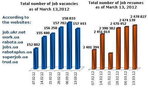 Labour market index of Ukraine as of March 13, 2012