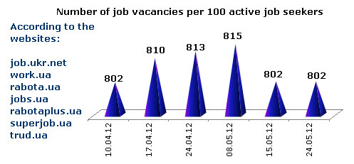 Association of Regional Recruitment Agencies “ARKA” and Navigator Consulting Company together with the largest job websites inform about change in Labour market index of Ukraine as of May 24, 2012. Labour market index shows change of demand and supply, Ukrainian labour market trends over the past 5 weeks. Index growth indicates increase in demand for personnel in Ukraine. Index fall indicates that it is getting more difficult for an average job seeker to get a job.