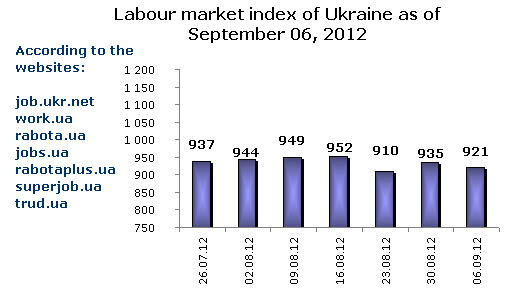 Labour market index of Ukraine as of September 06, 2012