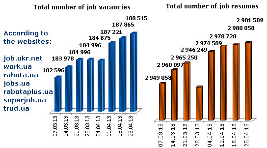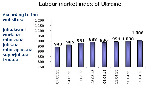 Labour market index of Ukraine as of April 25, 2013