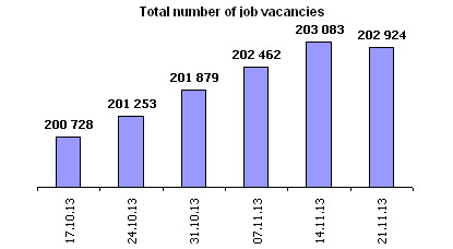 Selection of vacancies per applicant decreased by 1 point in the last week. Note: the calculation takes into account not only the total number of vacancies and resumes posted on job-sites, but the number of new, emerging in the last 7 days. |