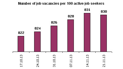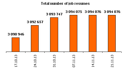 Association of Regional Recruitment Agencies “ARKA” and Navigator Consulting Company together with the largest job websites inform about change in Labour market index of Ukraine as of November 21, 2013. Labour market index shows change of demand and supply, Ukrainian labour market trends over the past 6 weeks. Index growth indicates increase in demand for personnel in Ukraine. Index fall indicates that it is getting more difficult for an average job seeker to get a job. Index of labour market decreased within the week by 5 points. The activity of the employers on the market decreased slightly.