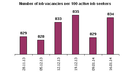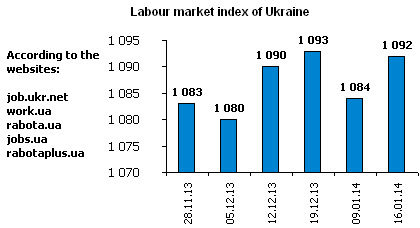 Association of Regional Recruitment Agencies “ARKA” and Navigator Consulting Company together with the largest job websites inform about change in Labour market index of Ukraine as of January 16, 2014. Labour market index shows change of demand and supply, Ukrainian labour market trends over the past 6 weeks. Index growth indicates increase in demand for personnel in Ukraine. Index fall indicates that it is getting more difficult for an average job seeker to get a job. Index of labour market for the week increased by 8 points. The activity of the employers on the market has increased.