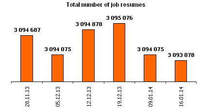 Selection of vacancies per applicant increased by 5 points in the last week. Note: the calculation takes into account not only the total number of vacancies and resumes posted on job-sites, but the number of new, emerging in the last 7 days. |