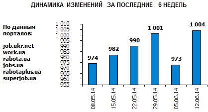 Ассоциация региональных кадровых агентств «АРКА» и Консалтинговая компания «Навигатор», совместно с крупнейшими интернет порталами по трудоустройству, сообщают об изменении Индекса рынка труда Украины по состоянию на 12.06.2014г. Индекс рынка труда Украины показывает изменение спроса и предложения на рынке труда за последнюю неделю в контексте общей активности работодателей и тенденции за последние 6 недель.