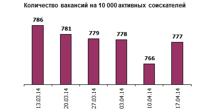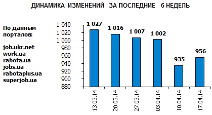 Ассоциация региональных кадровых агентств «АРКА» и Консалтинговая компания «Навигатор», совместно с крупнейшими интернет порталами по трудоустройству, сообщают об изменении Индекса рынка труда Украины по состоянию на 17.04.2014г. Индекс рынка труда Украины показывает изменение спроса и предложения на рынке труда за последнюю неделю в контексте общей активности работодателей и тенденции за последние 6 недель.