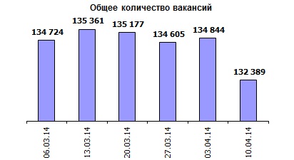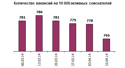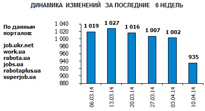 Ассоциация региональных кадровых агентств «АРКА» и Консалтинговая компания «Навигатор», совместно с крупнейшими интернет порталами по трудоустройству, сообщают об изменении Индекса рынка труда Украины по состоянию на 10.04.2014г. Индекс рынка труда Украины показывает изменение спроса и предложения на рынке труда за последнюю неделю в контексте общей активности работодателей и тенденции за последние 6 недель.