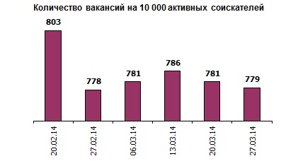 Ассоциация региональных кадровых агентств «АРКА» и Консалтинговая компания «Навигатор», совместно с крупнейшими интернет порталами по трудоустройству, сообщают об изменении Индекса рынка труда Украины по состоянию на 27.03.2014г. Индекс рынка труда Украины показывает изменение спроса и предложения на рынке труда за последнюю неделю в контексте общей активности работодателей и тенденции за последние 6 недель.