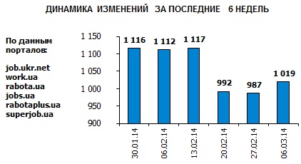 Ассоциация региональных кадровых агентств «АРКА» и Консалтинговая компания «Навигатор», совместно с крупнейшими интернет порталами по трудоустройству, сообщают об изменении Индекса рынка труда Украины по состоянию на 06.03.2014г. Индекс рынка труда Украины показывает изменение спроса и предложения на рынке труда за последнюю неделю в контексте общей активности работодателей и тенденции за последние 6 недель.