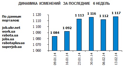Ассоциация региональных кадровых агентств «АРКА» и Консалтинговая компания «Навигатор», совместно с крупнейшими интернет порталами по трудоустройству, сообщают об изменении Индекса рынка труда Украины по состоянию на 13.02.2014г. Индекс рынка труда Украины показывает изменение спроса и предложения на рынке труда за последнюю неделю в контексте общей активности работодателей и тенденции за последние 6 недель.