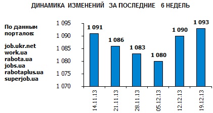 Ассоциация региональных кадровых агентств «АРКА» и Консалтинговая компания «Навигатор», совместно с крупнейшими интернет порталами по трудоустройству, сообщают об изменении Индекса рынка труда Украины по состоянию на 19.12.2013г. Индекс рынка труда Украины показывает изменение спроса и предложения на рынке труда за последнюю неделю в контексте общей активности работодателей и тенденции за последние 6 недель.