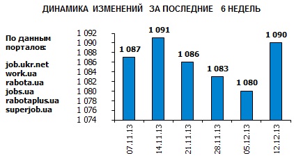 Ассоциация региональных кадровых агентств «АРКА» и Консалтинговая компания «Навигатор», совместно с крупнейшими интернет порталами по трудоустройству, сообщают об изменении Индекса рынка труда Украины по состоянию на 12.12.2013г. Индекс рынка труда Украины показывает изменение спроса и предложения на рынке труда за последнюю неделю в контексте общей активности работодателей и тенденции за последние 6 недель.