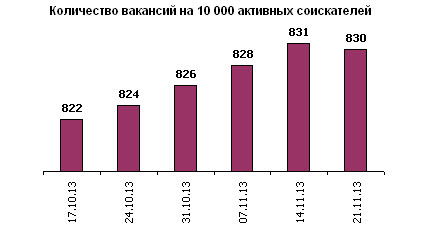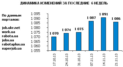 Ассоциация региональных кадровых агентств «АРКА» и Консалтинговая компания «Навигатор», совместно с крупнейшими интернет порталами по трудоустройству, сообщают об изменении Индекса рынка труда Украины по состоянию на 21.11.2013г. Индекс рынка труда Украины показывает изменение спроса и предложения на рынке труда за последнюю неделю в контексте общей активности работодателей и тенденции за последние 6 недель.
