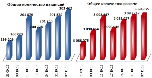 Примечание: при расчете учитывается не только общее число вакансий и резюме, размещенных на job-сайтах, но и число новых, появившихся за последние 7 дней.