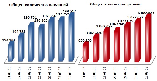 Примечание: при расчете учитывается не только общее число вакансий и резюме, размещенных на job-сайтах, но и число новых, появившихся за последние 7 дней.