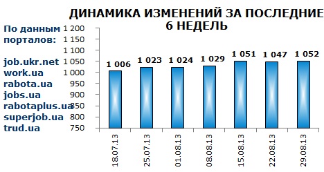 Ассоциация региональных кадровых агентств «АРКА» и Консалтинговая компания «Навигатор», совместно с крупнейшими интернет порталами по трудоустройству, сообщают об изменении Индекса рынка труда Украины по состоянию на 29.08.2013г.