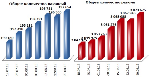Примечание: при расчете учитывается не только общее число вакансий и резюме, размещенных на job-сайтах, но и число новых, появившихся за последние 7 дней.