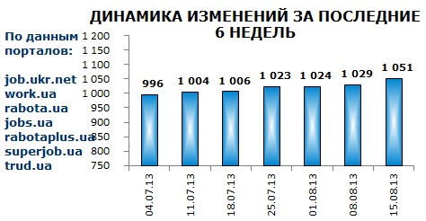 Ассоциация региональных кадровых агентств «АРКА» и Консалтинговая компания «Навигатор», совместно с крупнейшими интернет порталами по трудоустройству, сообщают об изменении Индекса рынка труда Украины по состоянию на 15.08.2013г.