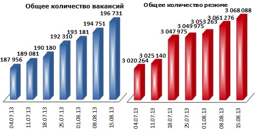 Примечание: при расчете учитывается не только общее число вакансий и резюме, размещенных на job-сайтах, но и число новых, появившихся за последние 7 дней.
