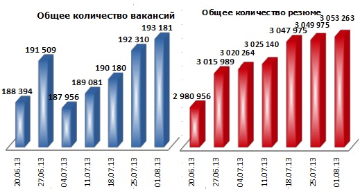Примечание: при расчете учитывается не только общее число вакансий и резюме, размещенных на job-сайтах, но и число новых, появившихся за последние 7 дней.