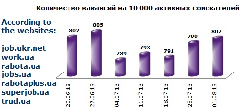 Ассоциация региональных кадровых агентств «АРКА» и Консалтинговая компания «Навигатор», совместно с крупнейшими интернет порталами по трудоустройству, сообщают об изменении Индекса рынка труда Украины по состоянию на 01.08.2013г.
