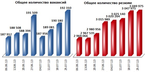 Примечание: при расчете учитывается не только общее число вакансий и резюме, размещенных на job-сайтах, но и число новых, появившихся за последние 7 дней.