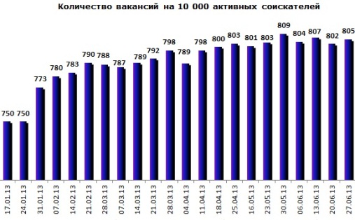 На основе анализа изменений «Индекса рынка труда» за период с января по июнь 2013 г.