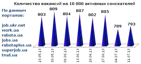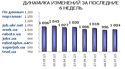 Ассоциация региональных кадровых агентств «АРКА» и Консалтинговая компания «Навигатор», совместно с крупнейшими интернет порталами по трудоустройству, сообщают об изменении Индекса рынка труда Украины по состоянию на 11.07.2013г.