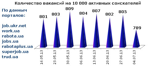 Ассоциация региональных кадровых агентств «АРКА» и Консалтинговая компания «Навигатор», совместно с крупнейшими интернет порталами по трудоустройству, сообщают об изменении Индекса рынка труда Украины по состоянию на 04.07.2013г.