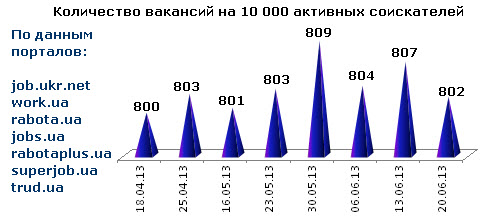 Ассоциация региональных кадровых агентств «АРКА» и Консалтинговая компания «Навигатор», совместно с крупнейшими интернет порталами по трудоустройству, сообщают об изменении Индекса рынка труда Украины по состоянию на 20.06.2013г.