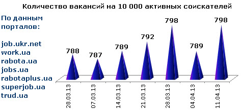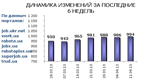 Ассоциация региональных кадровых агентств «АРКА» и Консалтинговая компания «Навигатор», совместно с крупнейшими интернет порталами по трудоустройству, сообщают об изменении Индекса рынка труда Украины по состоянию на 11.04.2013г.