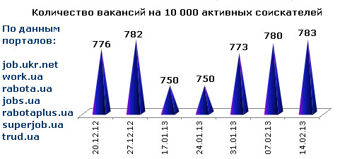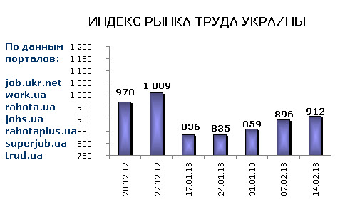 Ассоциация региональных кадровых агентств «АРКА» и Консалтинговая компания «Навигатор», совместно с крупнейшими интернет порталами по трудоустройству, сообщают об изменении Индекса рынка труда Украины по состоянию на 14.02.2013г.