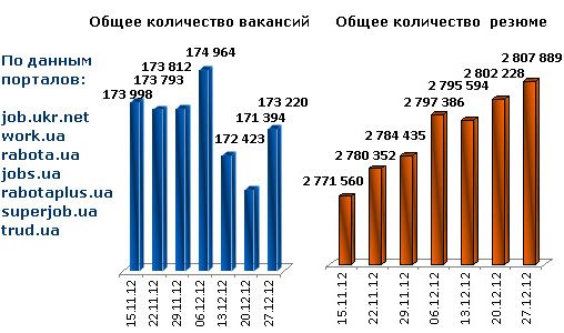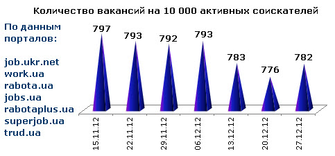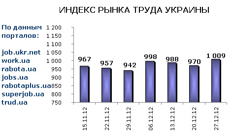 Ассоциация региональных кадровых агентств «АРКА» и Консалтинговая компания «Навигатор», совместно с крупнейшими интернет порталами по трудоустройству, сообщают об изменении Индекса рынка труда Украины по состоянию на 27.12.2012г.