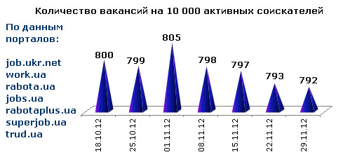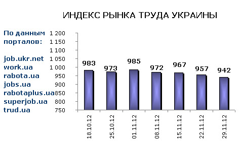 Ассоциация региональных кадровых агентств «АРКА» и Консалтинговая компания «Навигатор», совместно с крупнейшими интернет порталами по трудоустройству, сообщают об изменении Индекса рынка труда Украины по состоянию на 29.11.2012г.