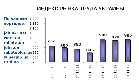 Ассоциация региональных кадровых агентств «АРКА» и Консалтинговая компания «Навигатор», совместно с крупнейшими интернет порталами по трудоустройству, сообщают об изменении Индекса рынка труда Украины по состоянию на 01.11.2012г.