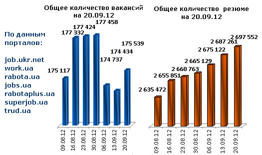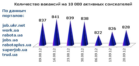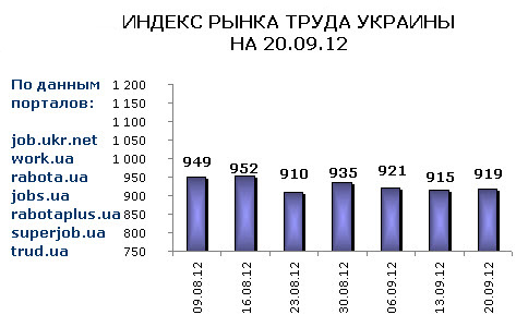 Ассоциация региональных кадровых агентств «АРКА» и Консалтинговая компания «Навигатор», совместно с крупнейшими интернет порталами по трудоустройству, сообщают об изменении Индекса рынка труда Украины по состоянию на 20.09.2012г.