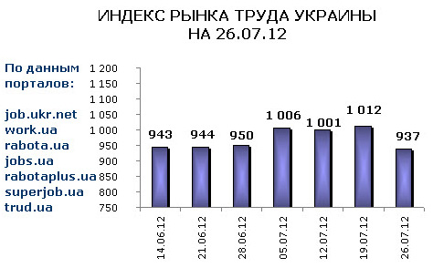 Ассоциация региональных кадровых агентств «АРКА» и Консалтинговая компания «Навигатор», совместно с крупнейшими интернет порталами по трудоустройству, сообщают об изменении Индекса рынка труда Украины по состоянию на 26.07.2012г.