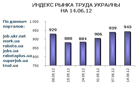 Ассоциация региональных кадровых агентств «АРКА» и Консалтинговая компания «Навигатор», совместно с крупнейшими интернет порталами по трудоустройству, сообщают об изменении Индекса рынка труда Украины по состоянию на 14.06.2012г.