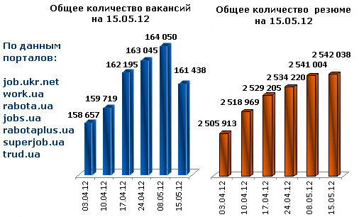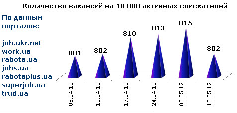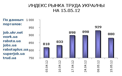 Ассоциация региональных кадровых агентств «АРКА» и Консалтинговая компания «Навигатор», совместно с крупнейшими интернет порталами по трудоустройству, сообщают об изменении Индекса рынка труда Украины по состоянию на 15.05.2012г.