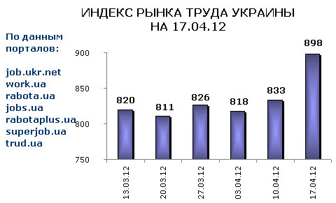 Ассоциация региональных кадровых агентств «АРКА» и Консалтинговая компания «Навигатор», совместно с крупнейшими интернет порталами по трудоустройству, сообщают об изменении Индекса рынка труда Украины по состоянию на 17.04.2012г.