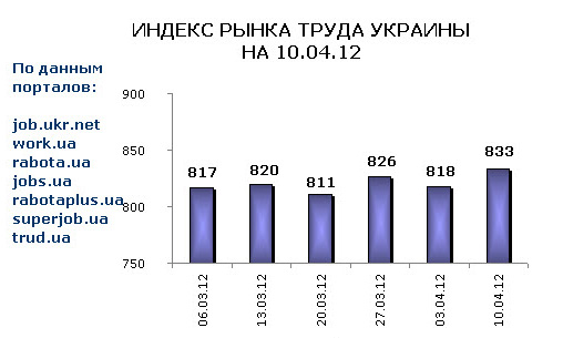 Ассоциация региональных кадровых агентств «АРКА» и Консалтинговая компания «Навигатор», совместно с крупнейшими интернет порталами по трудоустройству, сообщают об изменении Индекса рынка труда Украины по состоянию на 10.04.2012г.