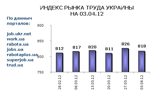Ассоциация региональных кадровых агентств «АРКА» и Консалтинговая компания «Навигатор», совместно с крупнейшими интернет порталами по трудоустройству, сообщают об изменении Индекса рынка труда Украины по состоянию на 03.04.2012г.