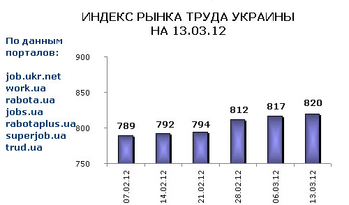 Ассоциация региональных кадровых агентств «АРКА» и Консалтинговая компания «Навигатор», совместно с крупнейшими интернет порталами по трудоустройству, сообщают об изменении Индекса рынка труда Украины по состоянию на 13.03.2012г.